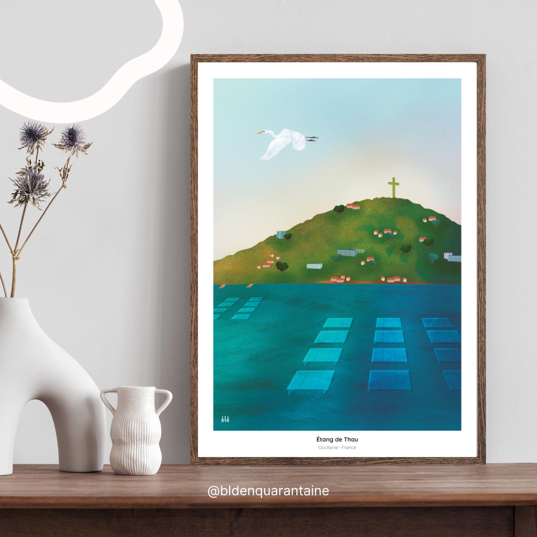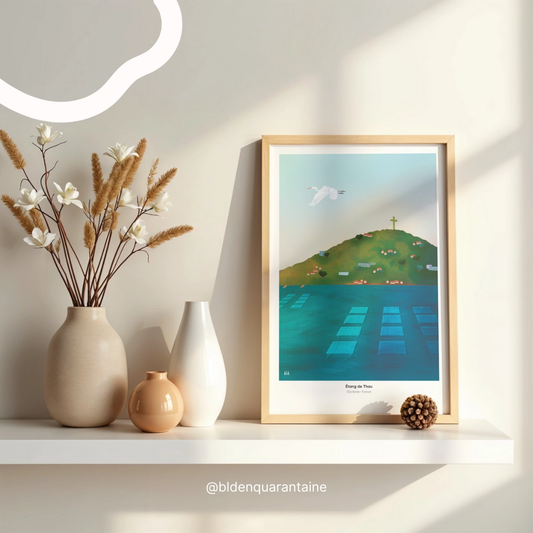 Avec ses couleurs douces et son style graphique poétique, cette création apporte une touche méditerranéenne pleine de caractère, idéale pour partager ou conserver un souvenir unique de Sète.